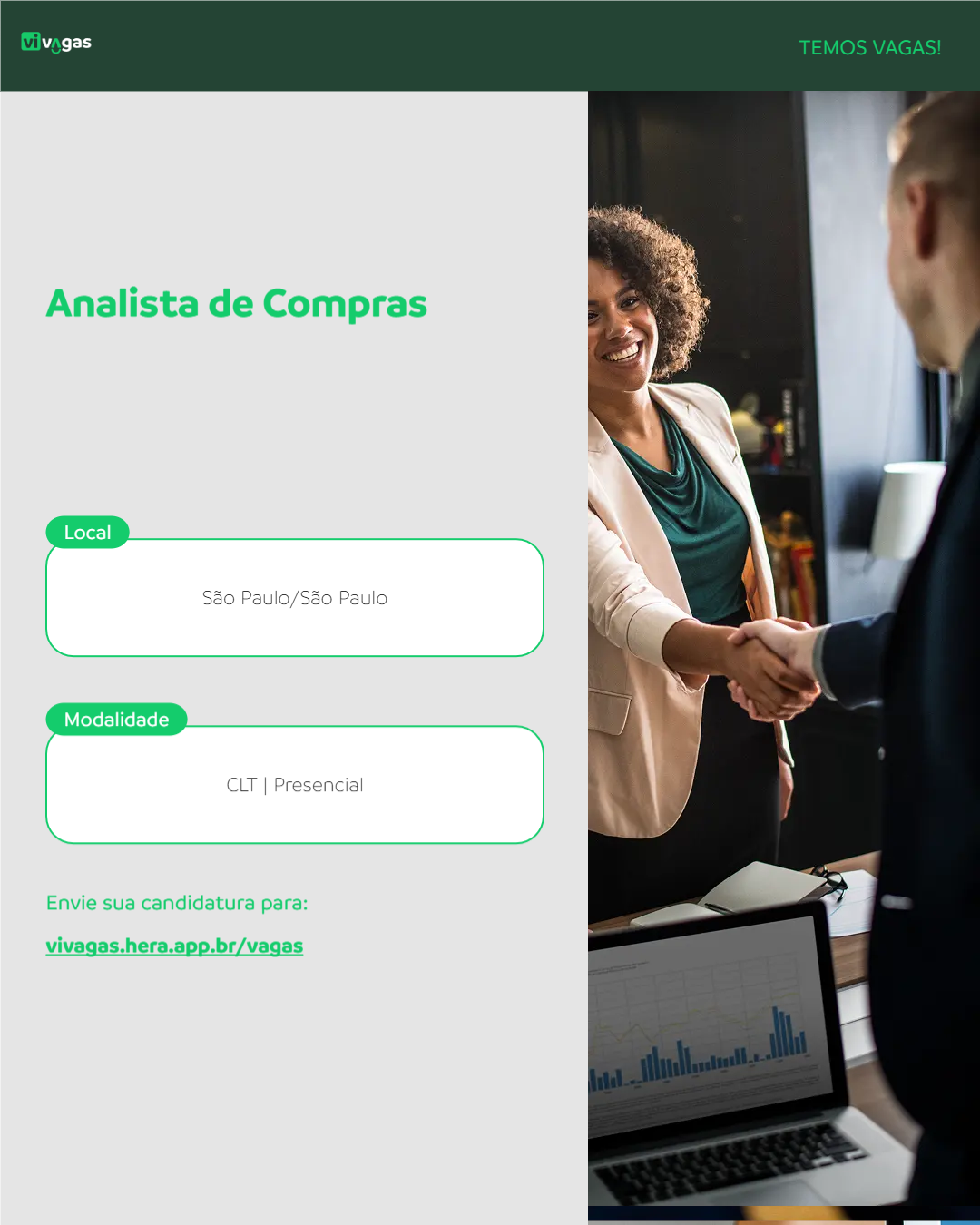 (Vaga para Banco de Talentos) O Analista de Compras será responsável por realizar a gestão de fornecedores, negociar contratos e garantir a aquisição de produtos e serviços com qualidade e eficiência. Este profissional atuará na análise de mercado, elaboração de relatórios e acompanhamento de pedidos, utilizando ferramentas de gestão de compras. É essencial que o(a) candidato(a) possua habilidades de comunicação e negociação, além de conhecimento em processos de compras e suprimentos, contribuindo para a otimização dos recursos da empresa.