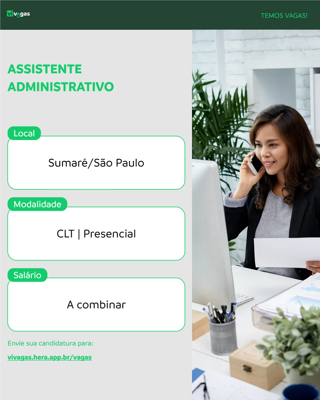 • Colaborar na gestão de suprimentos e materiais de escritório.