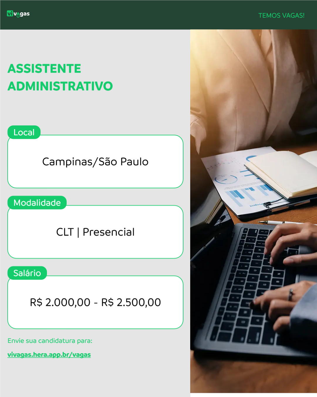 Campinas/SP Presencial CLT R$ 2.000,00 - R$ 2.500,00