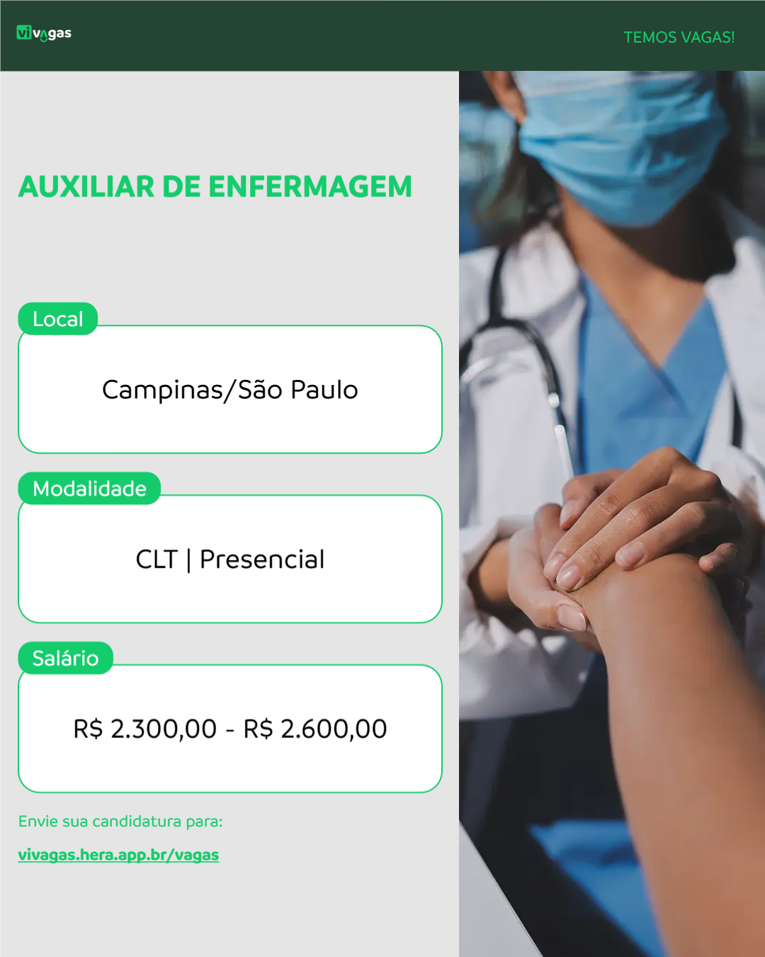 O Auxiliar de Enfermagem será responsável por prestar suporte nas atividades de cuidado ao paciente, auxiliando na administração de medicamentos, realização de curativos e monitoramento dos sinais vitais. Este profissional atuará em colaboração com a equipe de saúde, garantindo a qualidade do atendimento e o bem-estar dos pacientes. É essencial ter empatia, habilidades de comunicação e comprometimento com as normas de biossegurança. O cargo exige formação técnica em enfermagem e registro no conselho de classe.