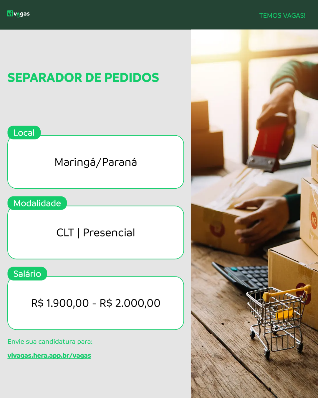 O(a) Separador(a) de Pedidos ( Banco de Talentos) atuará na organização e separação de produtos para atender às demandas dos clientes. Este profissional será responsável por garantir a precisão na separação dos itens, seguindo as orientações estabelecidas e utilizando ferramentas adequadas para otimizar o processo. É fundamental ter atenção aos detalhes e habilidades de trabalho em equipe, contribuindo para a eficiência do fluxo de pedidos e a satisfação dos clientes.